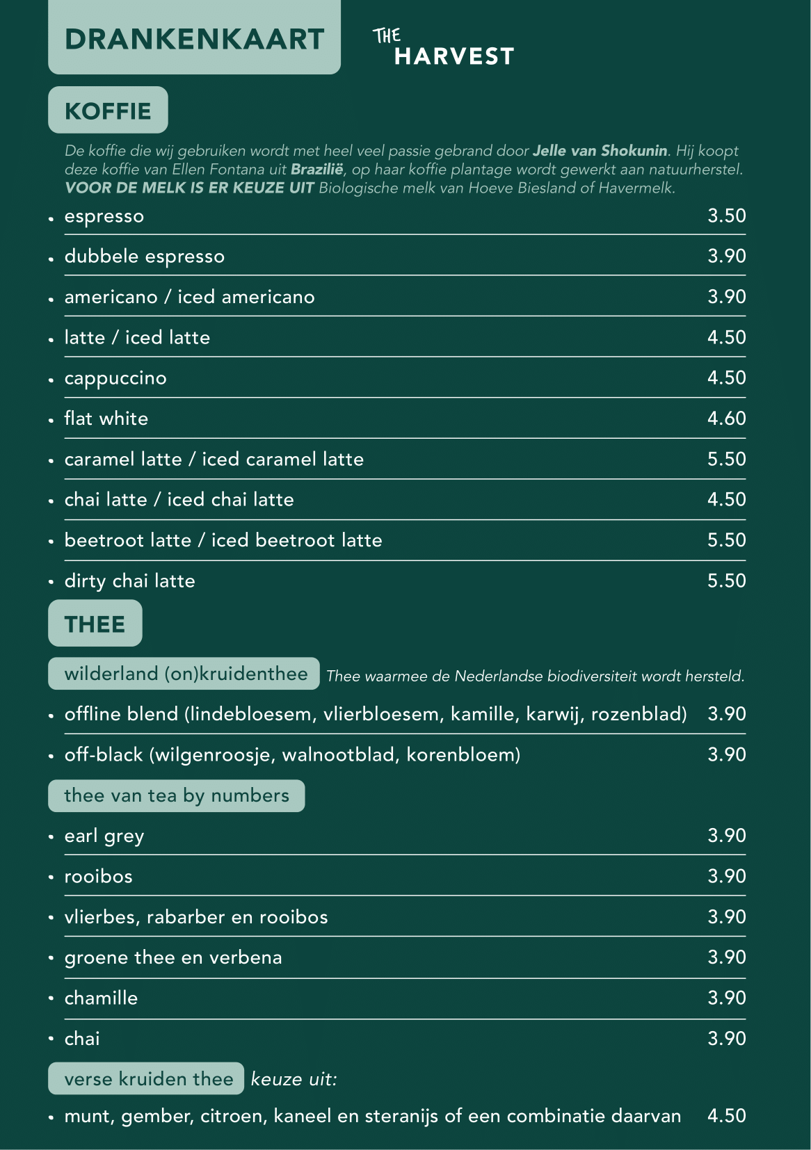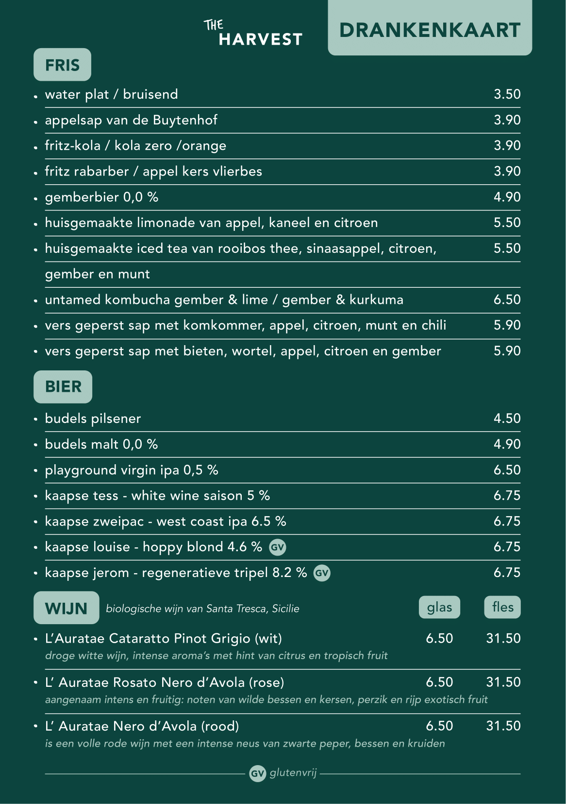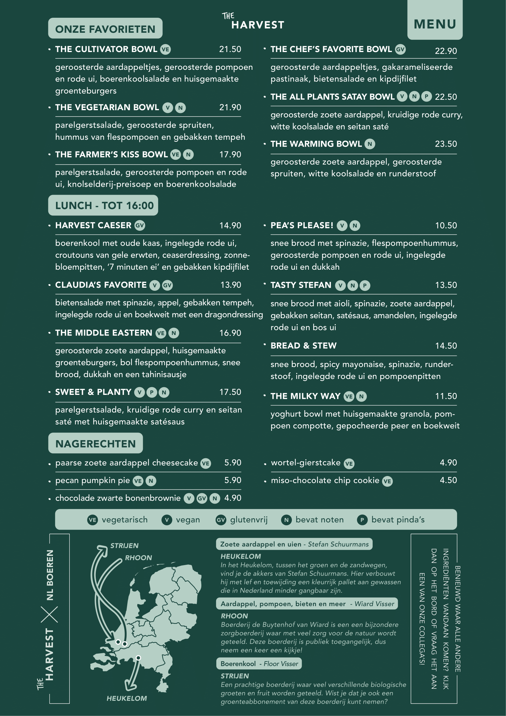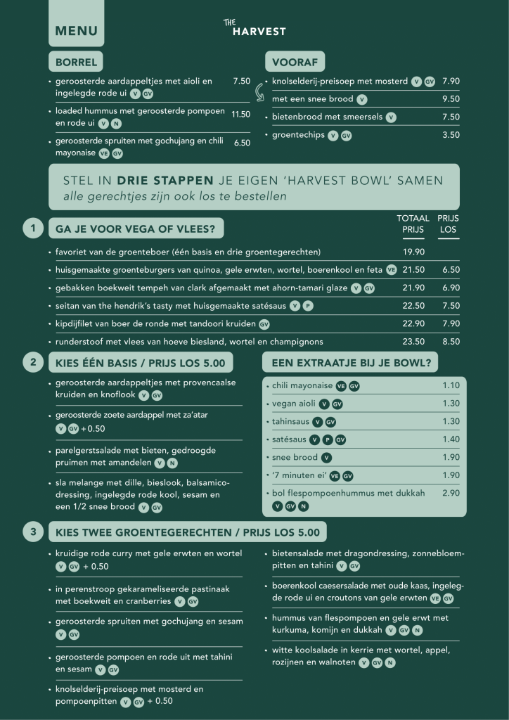 Het menu van The Harvest