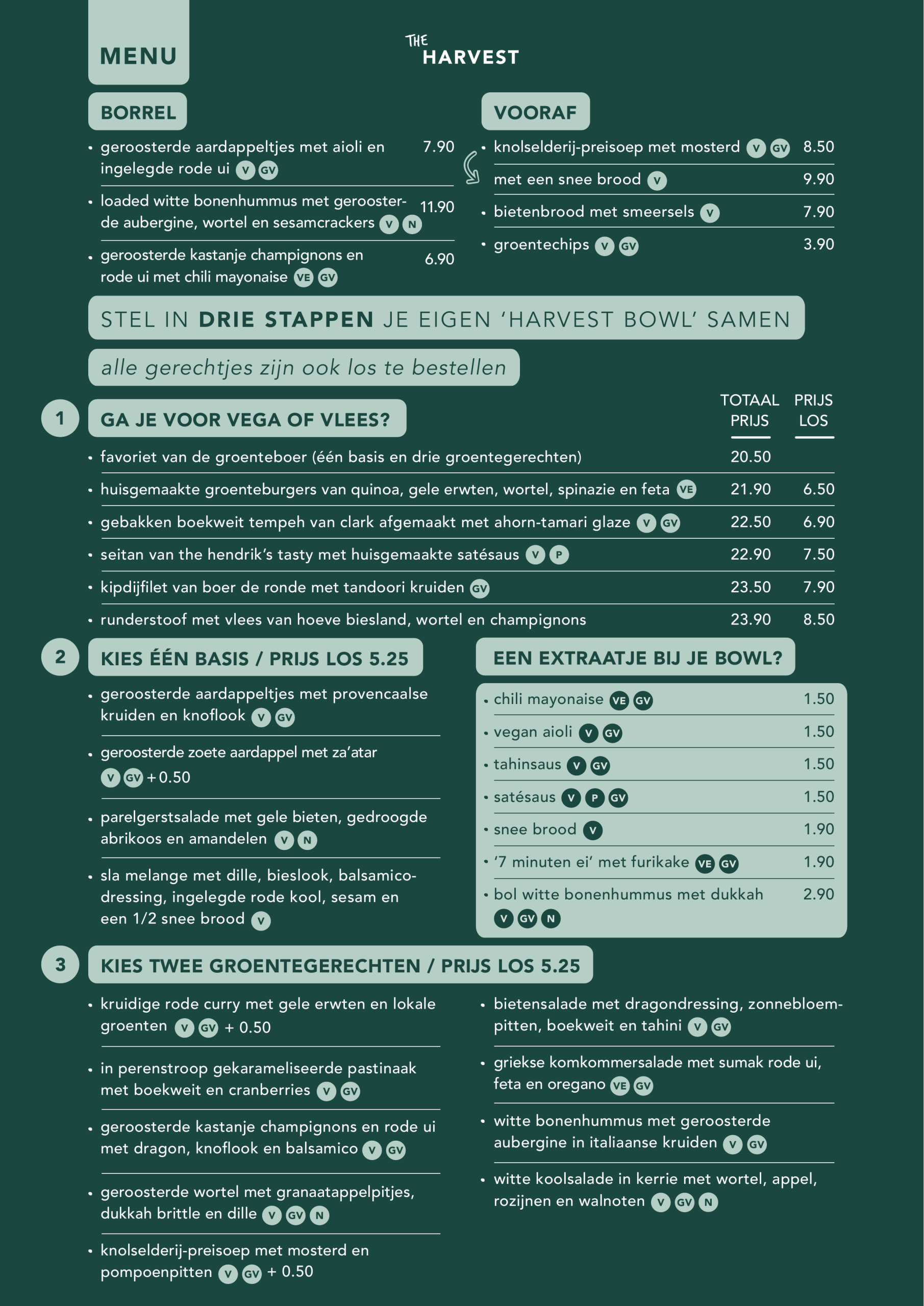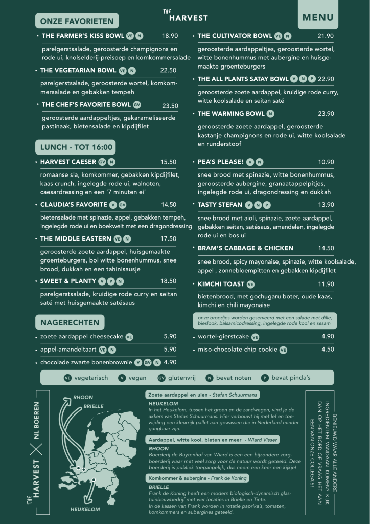Het menu van The Harvest